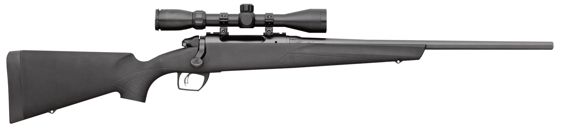 The Remington 783 is a bolt-action hunting rifle that delivers accuracy and reliability at an attractive price. The synthetic stock offers strength and durability while the trigger guard and sling swivel studs are molded into the stock. This rifle also features a free-floating button-rifled barrel an adjustable CrossFire trigger opposing locking lugs sliding plate-style extractor a detachable flush-fit steel box magazine and a recoil-reducing pad. The Model 783 also comes standard with a factory-mounted and bore sighted 39x32mm scope and is available in various calibers.