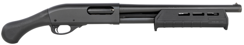 The Remington 870 Tac-14 pump-action shotgun is ultimate in strength, durability, silky-smooth bind-free action, and sleek classical lines. It is the heart of the Model 870’s landmark dependability and durability a receiver machined from a single block of solid steel. From this foundation of impeccable strength is a smooth-shooting, rock-solid action that would still be hailed as an advancement. Small in size but huge on home defense capability, the Model 870 TAC-14 delivers devastating, threat-stopping power to protect your home and family. Featuring legendary Remington 870 reliability, a Raptor pistol grip and Magpul M-Lock forend, its powerful personal protection at its absolute shortest– and finest.