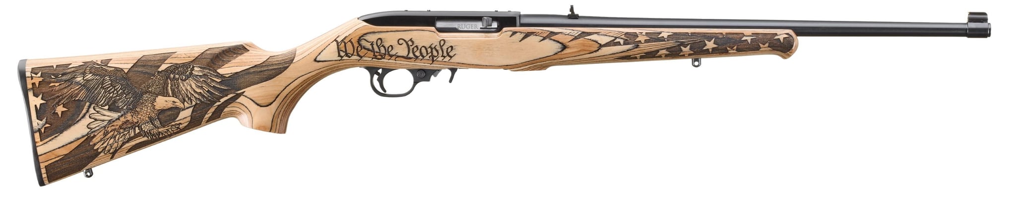A timeless favorite among rimfire enthusiasts, the Ruger 10/22 Carbine combines classic reliability with a patriotic twist. Chambered in .22 LR, this semi-automatic rifle features a striking Altamont natural laminate stock engraved with We The People, making it as visually distinctive as it is functional. Ideal for target shooting, training, or small game hunting, this edition of the legendary 10/22 brings rugged style to the range.