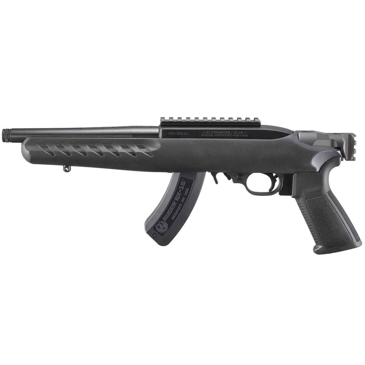 Ruger 22 Charger Threaded Barrel 22 Long Rifle 8in Black Modern Sporting Pistol – 15+1 Rounds- This semi automatic pistol has black polymer grips and a factory-installed picatinny rail.