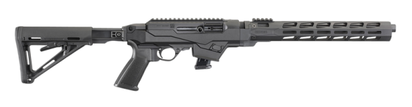 The Ruger PC Carbine features an integrated Picatinny-style rail and in Type III hard-coat anodized for maximum durability. interchangeable magazine wells for use of common Ruger and Glock magazines. Ships with SR-Series pistol magazine well installed and an additional magazine well accepting Glock magazines is included; accurate sighting system with adjustable ghost ring rear aperture sight and non-glare, protected blade front sight; Soft rubber buttpad with spacers allows the rifle to be properly sized for different shooters or varying levels of outerwear or defensive gear; durable glass-filled nylon synthetic fixed buttstock features a proprietary texture for enhanced control and an integral sling mount for rapid sling attachment; light, crisp trigger pull with minimal overtravel and positive reset utilizing proven 10/22 trigger components and the pinned & welded barrel provides consistent accuracy, while barrel fluting sheds unnecessary weight and allows for quick handling. This PC Carbine includes one SR-Series pistol magazine, three 1/2″ spacers and hex wrenches for rear sight adjustment, buttpad spacer adjustment and charging handle removal.
