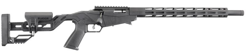 Features a molded, one-piece chassis and adjustable buttstock assembly with flat picatinny bag rider making it easy to affix a rear monopod. Quick-Fit adjustable Precision Rimfire stock allows length of pull and comb height to be quickly adjusted for proper fit. Big-Gun bolt throw adjustment enables shooters to change from a rimfire 1-1/2 inch bolt throw to a short-action centerfire 3 inch bolt throw, reducing the chance of short-stroking your bolt in competition. Ruger Marksman Adjustable trigger has a pull weight range of 2.25 to 5.0 pounds; adjusting wrench is stored in a buttstock compartment. AR-Pattern pistol grip and reversible safety selector. Anodized picatinny scope base includes 30 MOA elevation for increased long-range capabilities. Oversized bolt handle. Fifteen inch free-float M-LOK handguard made of hard black anodized aluminum and features M-LOK slots on all four sides. Eighteen inch target barrel is cold hammer-forged from 4140 alloy steel and threaded at 1/2-28 tpi for standard muzzle accessories. Includes thread protector. Accepts all 10/22 magazines. Comes with two BX magazines.