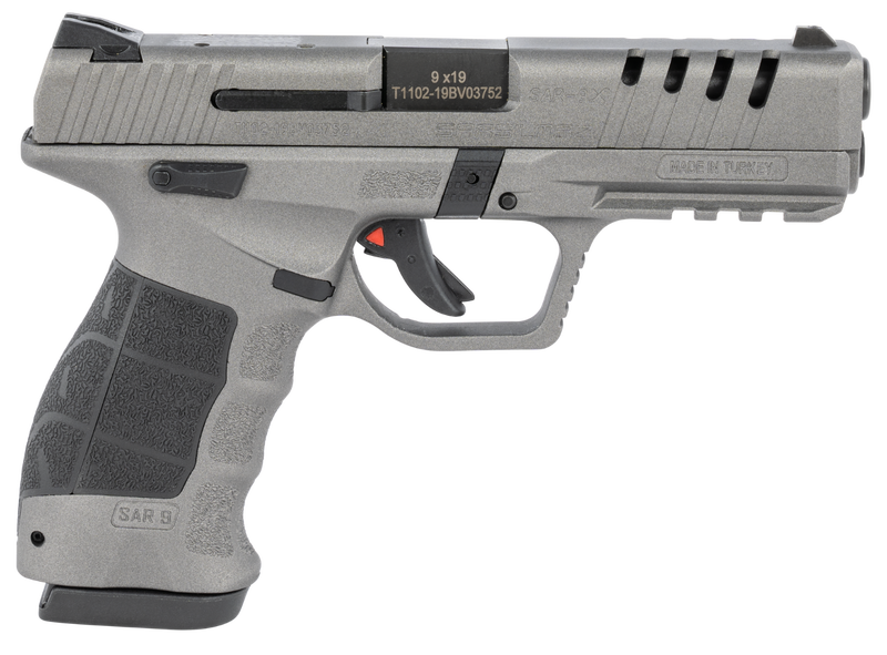 The ultimate SAR USA SARX9, the X Platinum model boasts a Cerakote finish with slide serrations to reduce weight. This same buttery smooth double action trigger, adjustable sights and accessory rail are standard features on the X Platinum. The SAR9X comes with one 17 and one 19 round magazine