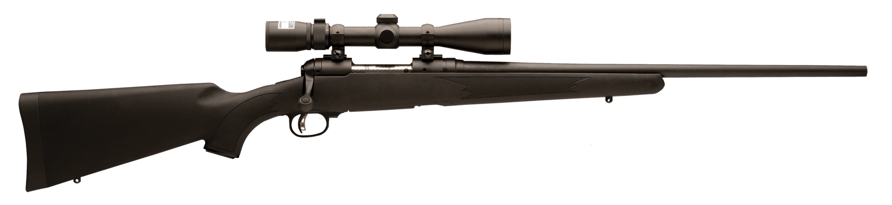 The Savage Arms 11111 Trophy Hunter XP is a bolt action rifle. It features a synthetic stock with checkered grip panels sling swivel studs and recoil pad. This rifle also offers a matte blued carbon steel button rifled barrel user-adjustable AccuTrigger floating bolt head and detachable box magazine. This rifle is available from its manufacturer bundled with a 3-9x40mm Nikon scope with a BDC reticle.