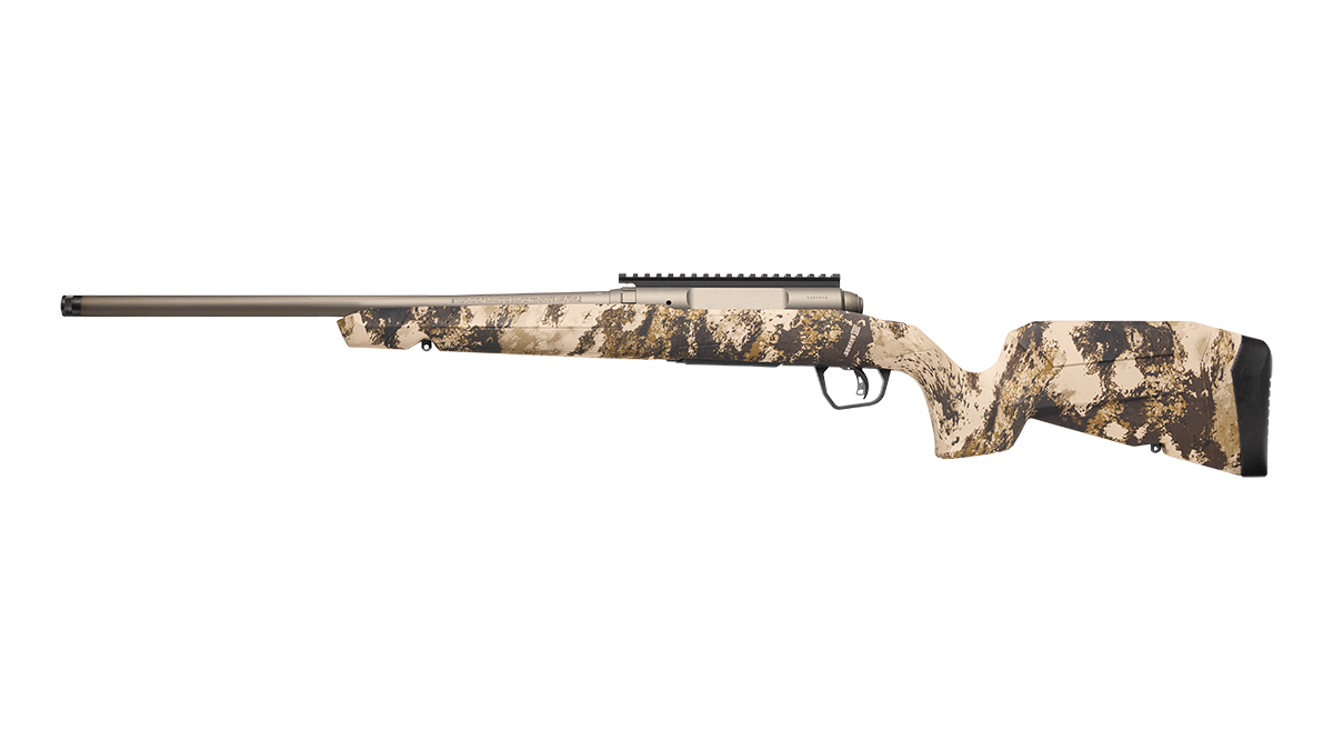 This model is chambered in 6mm ARC and features a custom “Savage Western” camouflage stock pattern. One 4-round magazine is included.