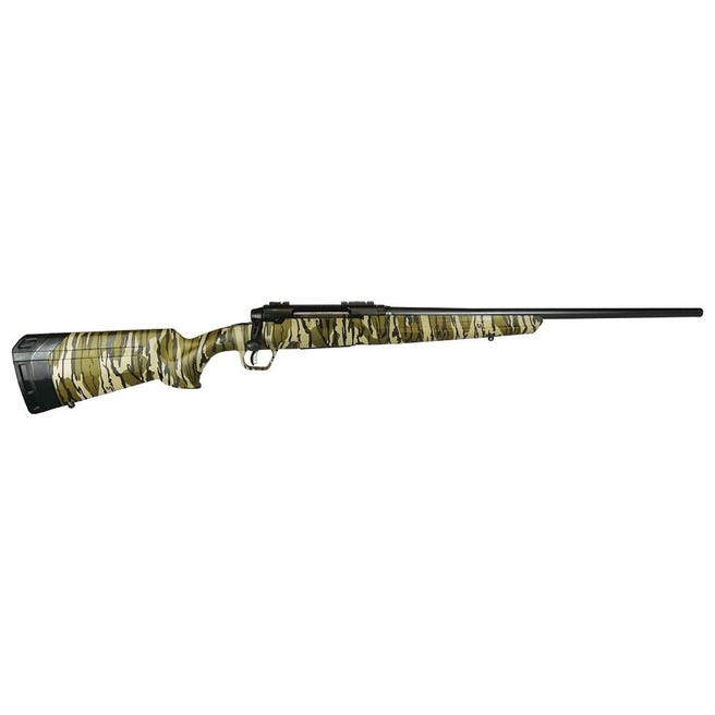 The rifle boasts a distinctive Mossy Oak Bottomland pattern on the stock, providing both camouflage in the field and a unique appearance. The matte finish on the barrel and receiver enhances the rifle’s durability and resistance to the elements.