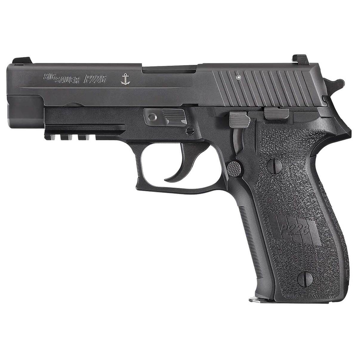 Sig Sauer P226 MK25 9mm Luger 4.4in Black Nitron Pistol – 10+1 Rounds – The P226 is the pistol that set the standard by which all other combat handguns are measured. The exceptional ergonomics and balance make this fullsize pistol easy to handle. Its longer barrel yields better ballistic performance and accuracy. The P226 MK25 is identical to the pistol carried by the U.S. Navy SEALs, the fleet’s special warfare operators. The railed P226 chambered in 9mm and engraved with an anchor on the left side of the slide is the official sidearm of the SEALs.
