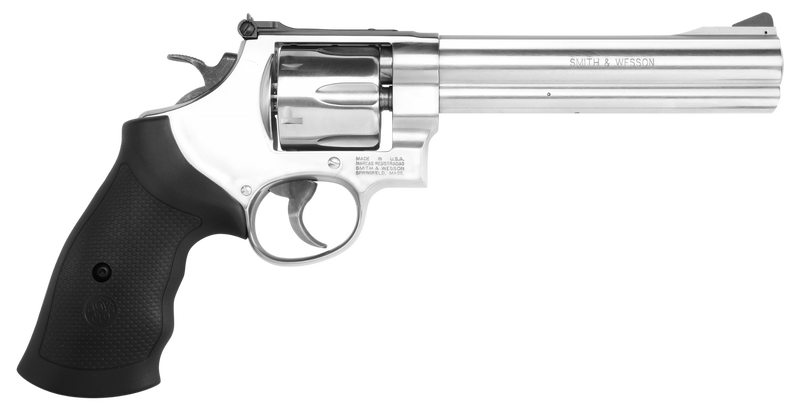 The Smith & Wesson Model 610 10MM is available in two barrel lengths in the stainless steel large N-Frame revolver. The model 610 is ideally suited for personal protection or handgun hunting with the popular 10MM auto or 40S&WΒ cartridge.Β Three moon clips are included.