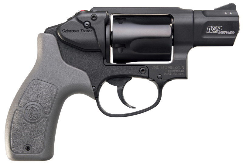 The Smith and Wesson M&P Bodyguard is perfect for self defense. This revolver is chambered in .38 SPl +p, has a 1.88-inch barrel, and can hold 5 rounds. Finished in black and gray, it features a black ramp front sight, a fixed rear sight, a black PVD barrel and cylinder, and comes with a crimson trace laser. Buy guns online from the best online gun store and get this revolver and other handguns for sale at GrabAGun today!