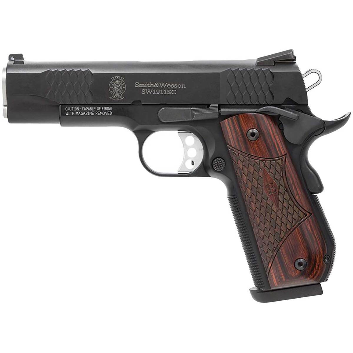 We comply with all federal and state firearm laws. It is your responsibility to ensure the Smith & Wesson 1911 E Series 45 Auto (ACP) 4.25in Black Melonite Pistol - 8+1 Rounds is legal in your state. Some states may have restrictions on certain firearm models or features.