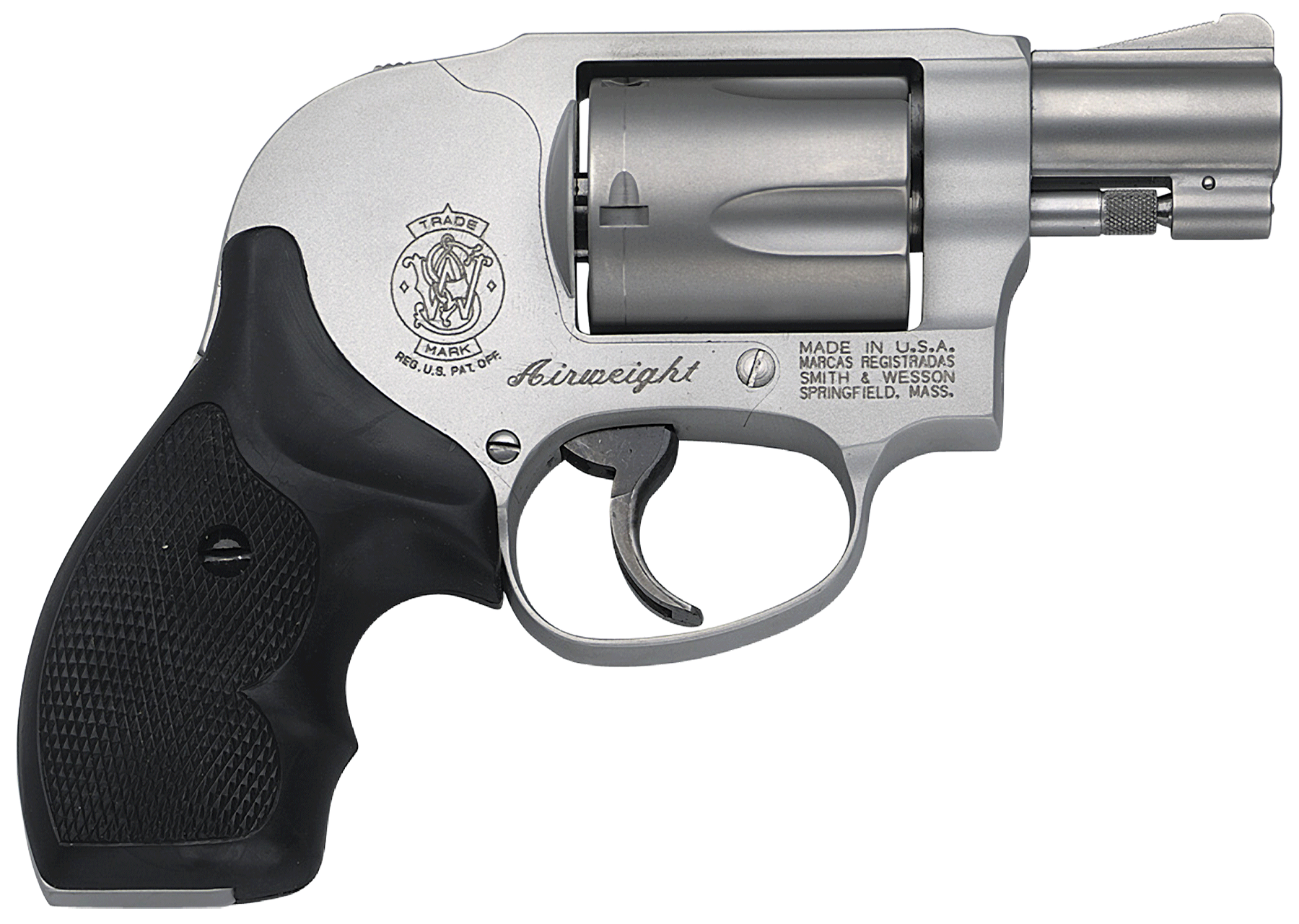 Action SADA – Caliber .38 SW Special P – Capacity 5 – Finish Stainless – Material Aluminum Alloy Steel – Grips Black Synthetic – Sights Integral Fixed – Barrel Length 1.875″ – Overall Length 6.3″1 – Weight 15.1 oz. – The Smith & Wesson J-Frame has become the most popular small frame personal defense revolver on the market. With decades of reliable performance to its credit the J-frame line offers models capable of firing .22 LR .22 Magnum .38 SW Special and the more powerful .357 Magnum loads. Smith Wesson offers these revolvers from our production MP Pro Series and Classics lines in three diverse hammer designs internal exposed and shrouded.