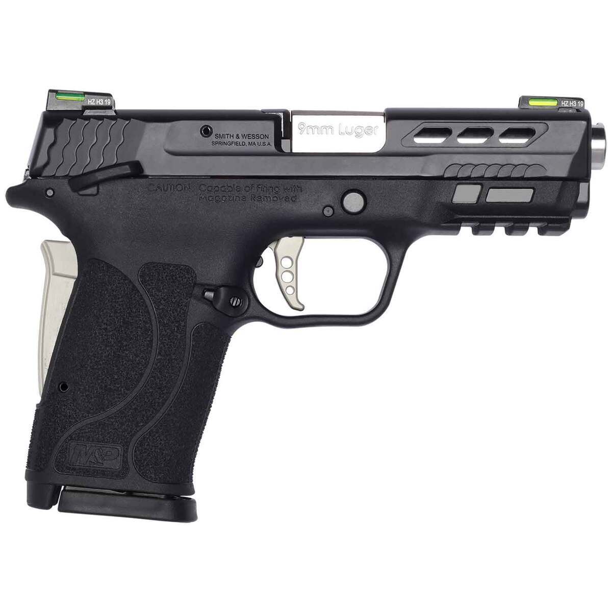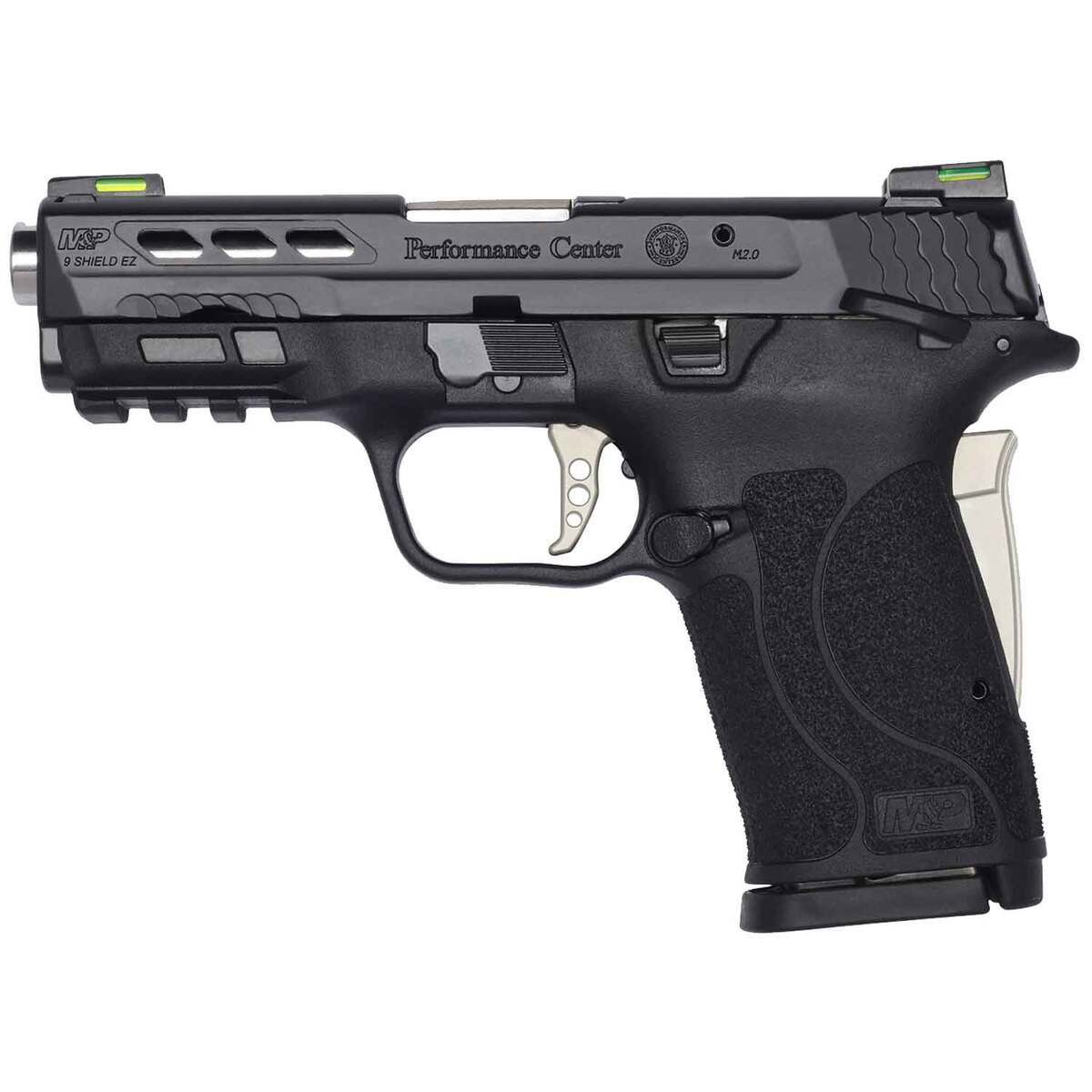 Smith & Wesson Performance Center M&P Shield EZ M2.0 9mm Luger 3.8in Matte Black Pistol – 8+1 Rounds – The Performance Center M&P 9 Sheild EZ pistol features a ported, high-bright finished barrel to reduce muzzle flip. Its easy to rack slide utilizes lightening cuts in the slide for reduced weight, while the Tactile loaded chamber indicator (TLCI) lets you see and feel if there is a round in the chamber. The PC flat face, silver anodized aluminum trigger is crisp, lightweight and comes with tactile and audible trigger reset. The Performance Center M&P 9 Shield EZ pistol also features a PC enhanced silver anodized aluminum grip safety, HI-VIZ Litewave H3 Tritium/Litepipe sights, and picatinny-style rail. It comes with two easy-to-load, 8-round magazines.
