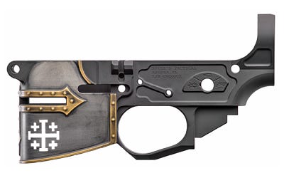 Spike’s Rare Breed Crusader multi-caliber stripped lower is made to the highest standards. It is constructed of 7075-T6 forged aluminum with a black hard coat anodized finish. This model features the painted crusader.