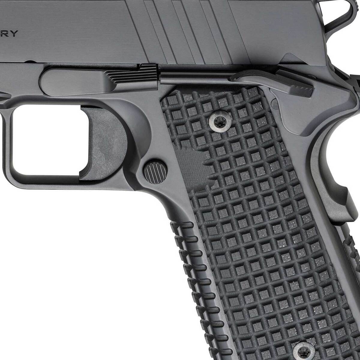 Springfield Armory 1911 Emissary 9mm Luger 5in Black Cerakote Pistol – 9+1 Rounds – The all-black Emissary in 9mm features a Cerakote finish that combines with custom 1911-style features and enhancements to offer a serious defensive pistol. The 5in-barreled pistol has a “Tri-Top” cut to the slide with light diffusing 40 LPI flat-top serrations, and the heavy-profile bull barrel delivers maximum accuracy and reduced muzzle flip. With a forged slide and frame for strength and durability, the Emissary blends form and function seamlessly in a defensive-minded firearm loaded with custom-grade features.