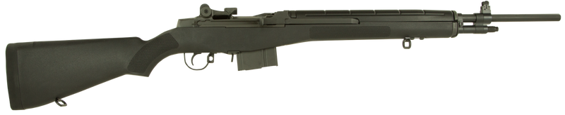The M1A Loaded features a medium-weight premium air-gauged National Match barrel for greater accuracy, National Match two-stage trigger, and National Match front sight blade and non-hooded National Match rear. This model has a 22″ carbon barrel with black parkerized finish, black synthetic stock, and a 10-round magazine.