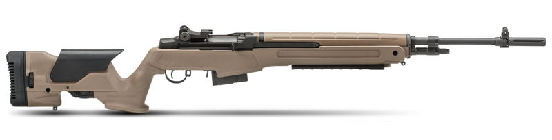 The Loaded Series combines the appearance and tradition of the Standard M1A with all the goodies you want to take the rifle to the next level. All Loaded models have a medium-weight premium air-gauged National Match barrel for greater accuracy. Competitive shooters will also appreciate the National Match tuned 4.5-5lb two-stage trigger. A National Match front sight blade and non-hooded Match Grade rear aperture aid in precise target acquisition. This model features a precision adjustable FDE synthetic stock and carbon steel barrel.