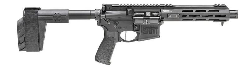 Springfield’s Saint Victor AR Pistol features forged upper and lower 7075-T6 aluminum receiver with Accu-Tite tension system and a receiver end plate with QD swivel mount point. It also has a 7.5″ 416R stainless steel barrel with Melonite treatment and a SA forward blast diverter. The handguard is free-floating with M-Lok and a forward hand stop. The Saint AR Pistol also features a SB Tactical SBX-K forearm brace, a Bravo Company MOD three pistol grip, carbine “H” heavy tungsten buffer, and a 10-round MagPul PMAG Gen 3.