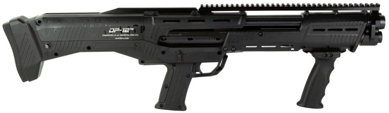 The innovative design and guaranteed functionality of the Standard Manufacturing DP-12 is well ahead of its time. The DP-12 is a premium defense, double-barreled, pump 12-gauge shotgun that quickly fires 16 rounds. It is designed for the most discerning shooters who demand extreme firepower and require consistent reliability. The spreader choke tubes have a have Tru-Choke thread pattern and are designed to shoot a devastating pattern at 25 yards. The stock has a QR code you can scan with your smartphone or tablet to download the manual and other information from Standard Manufacturing.
