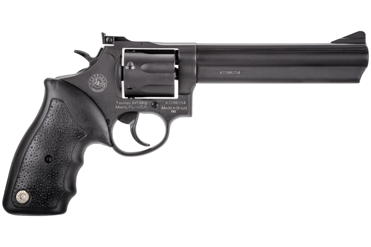 A preferred firearm for security and homeland defense forces the Taurus Model 66 is a seven-shot revolver chambered in 357 Mag. This double-action gun is available with either a four or six inch barrel. The standard key operated Taurus Security System is built into the frame of the Model 66.