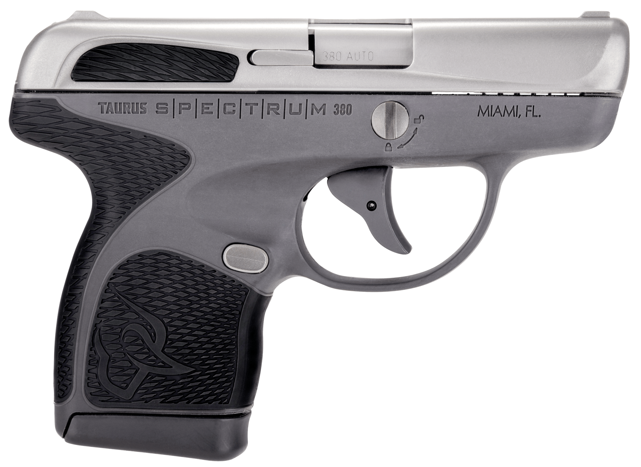 The Taurus Spectrum is a semi-automatic centerfire pistol designed with soft edges for easy drawing. It features a stainless steel slide soft-touch overmolded grip and integrated low profile front and rear sights. This ambidextrous pistol also offers a reversible magazine release double action trigger with non-energized striker and takedown pin. True to its name the Taurus Spectrum is available in several color combinations.
