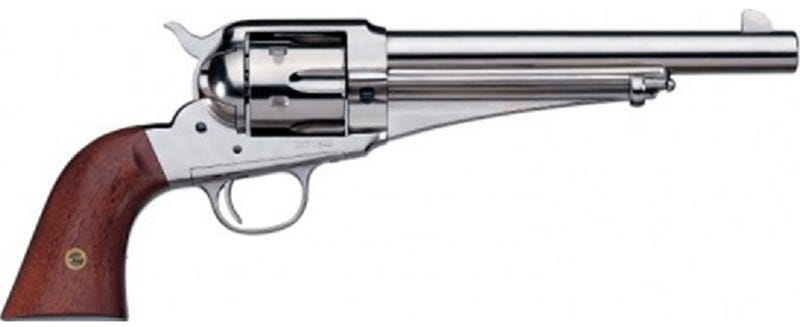 The Taylors and Co 1875 Army Outlaw revolver delivers power and consistency in a lightweight, classic design. Features include a fixed blade front sight, rear frame notch sight, two piece walnut grip, and nickel finish with charcoal-blue screws. It comes chambered in .45LC with a 7.5 inch barrel and 6 round capacity. Get the best gun deals online at GrabAGun!