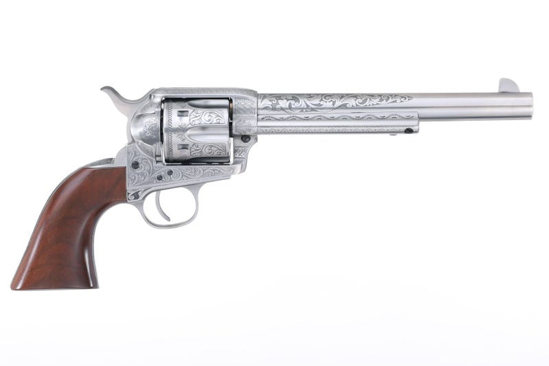 We comply with all federal and state firearm laws. It is your responsibility to ensure the Taylors and Co Uberti 1973 Cattleman Engraved Stainless .45 Colt 7.5" Barrel 6-Rounds is legal in your state. Some states may have restrictions on certain firearm models or features.