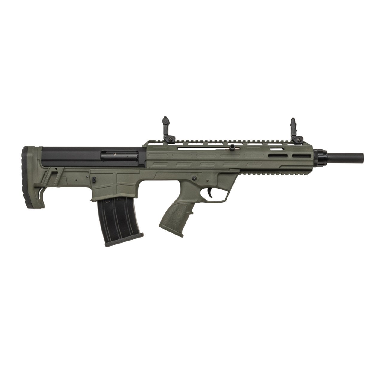 The TBP 12 embodies exactly what gun-enthusiasts love about bull-pup firearms at an affordable price point. This semi-automatic shotgun is fit into a compact footprint that is complimented by a full-length 18.5” barrel with plenty of picatinny rail space for mounting a host of optics and other accessories. The TBP 12 utilizes the industry standard T-1919 shotgun magazines that are available in varying capacities up to 20rds to suit the end-users needs.