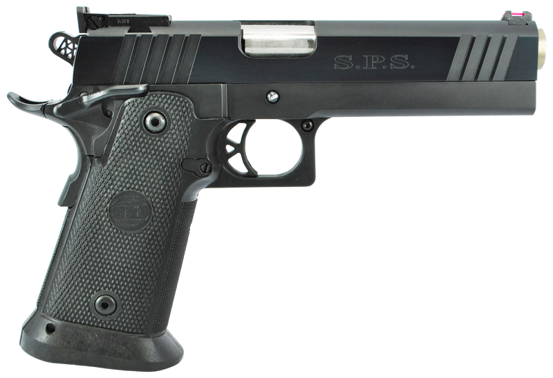 The TriStar SPS Pantera 1911 is a 9mm, semi-automatic with steel frame and steel slide. Single Action. Wide magwell. Front fiber optic dovetail & Rear adjustable Bomar sight. Nylon polymer grips with logo. Extended beavertail & Ambidextrous thumb safety. Lightweight polymer trigger. Skeletal combat hammer. Wide front & rear slide serrations. The SPS Pantera 1911 has 1 Magazine included, and packaged in hard plastic case. This TriStar also includes a gunlock, cleaning kit and owners manual.