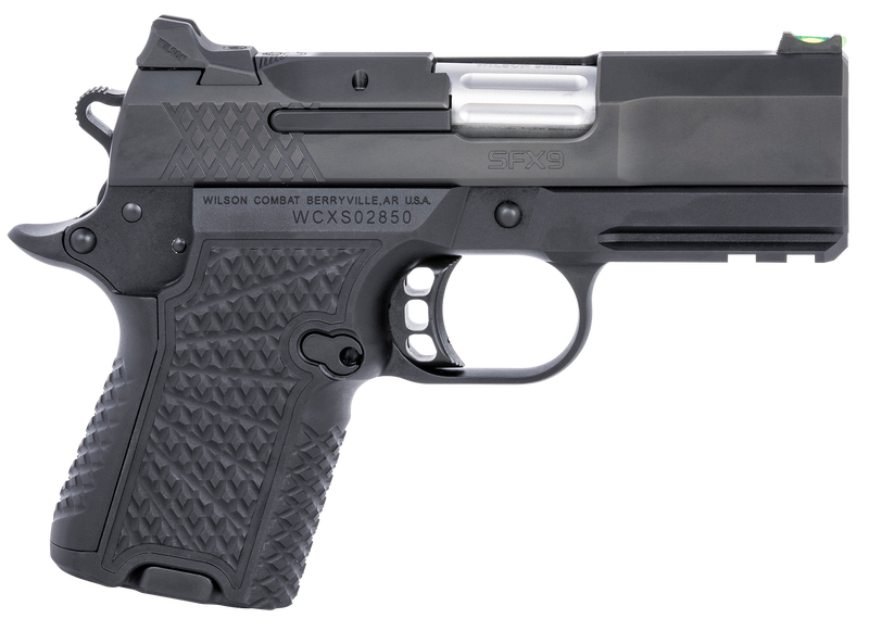 The Wilson Combat SFX9 Subcompact is a features a sub-compact size aluminum X-Frame with reliability enhanced frame rails. It has a crisp trigger pull, concealment bullet proof magazine release and slide stop, Unique X-TAC rear cocking serration treatment on slide, and a stainless cone barrel with reliability enhancing lock-up.