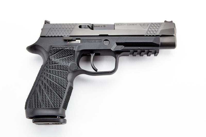 Wilson Combat and SIG SAUER are pleased to announce the availability of a Wilson Combat enhanced P320 .9mm semi-automatic pistol collaboration, the WCP320. Using the Wilson Combat SIG P320 grip module, our in-house re-machined slide, and Wilson Combat performance battle sights, the Wilson Combat Optimized WCP320 is tailored for precision tactical pistol shooting. Featuring the Wilson Combat polymer grip module; the slide has been machined with the Wilson Combat X-TAC pattern for improved manipulation under stress. The front and rear cocking serrations, as well as the slide top, wear this signature Wilson Combat pattern with the Wilson Combat logo on the slide. The stainless steel slide and Chromoly barrel wear the most advanced black DLC (Diamond-Like-Carbon) physical vapor deposition finish; The SIG SAUER flat-faced XFULL trigger is standard on the WCP320 and gives shooters a lower finger position on the trigger which increases leverage for a lighter, smoother trigger pull; action tune with strait trigger and Wilson Combat Battlesight with red fiber optic front sight. Includes (2) 17 round X-Series magazines.
